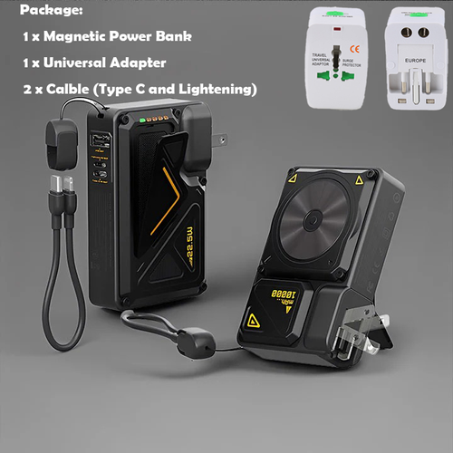 Magnetic Power Bank + Universal Adapter + Calble (Type C and Lightening)